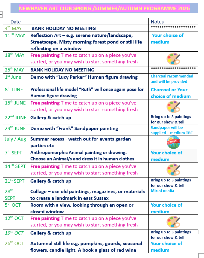 The club annual Summer exhibition will be at the crypt Seaford this year